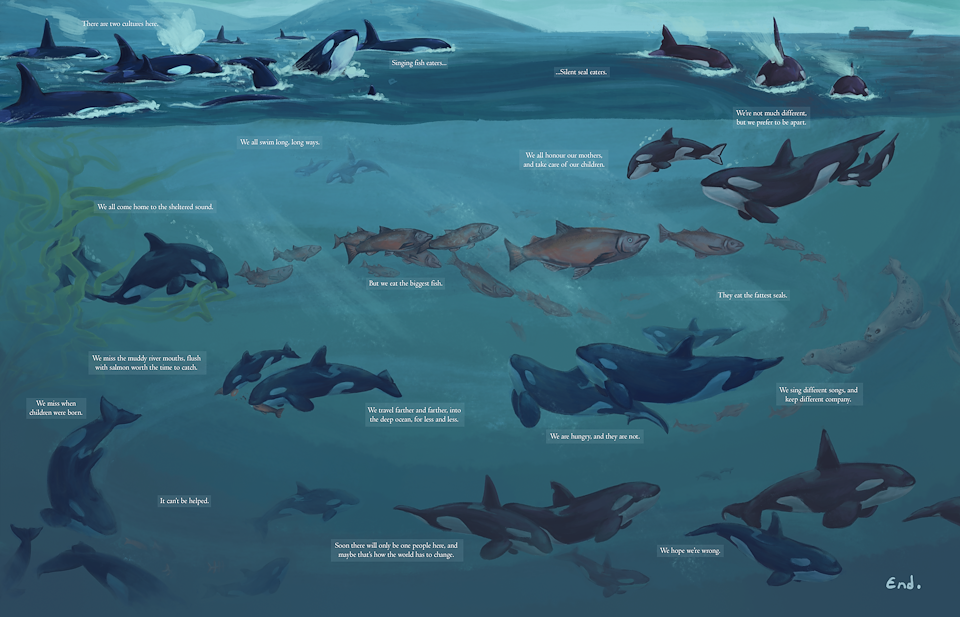 "Two Peoples" painting done for Those Who Remain, a Southern Resident killer whale conservation zine (2018)