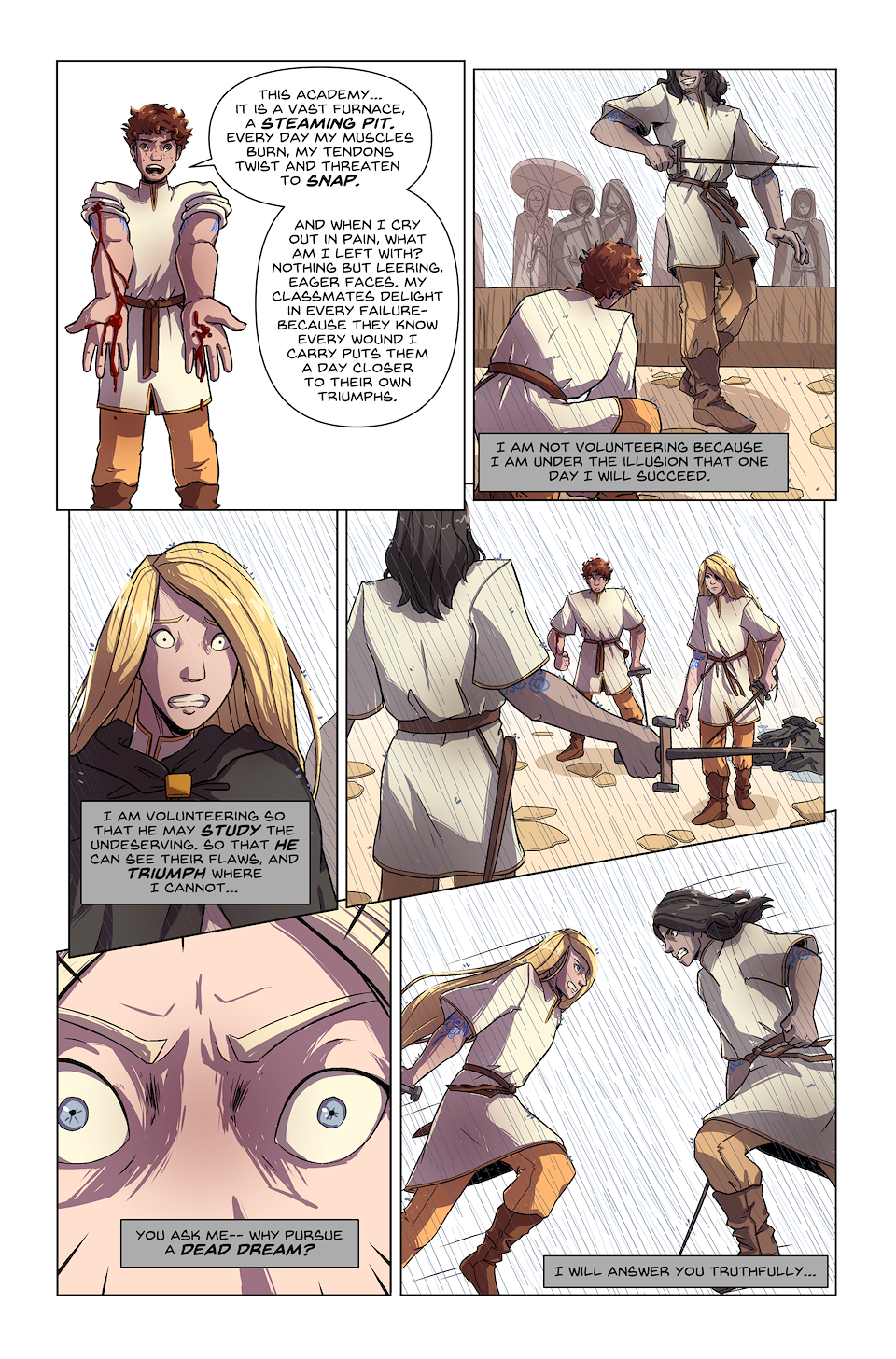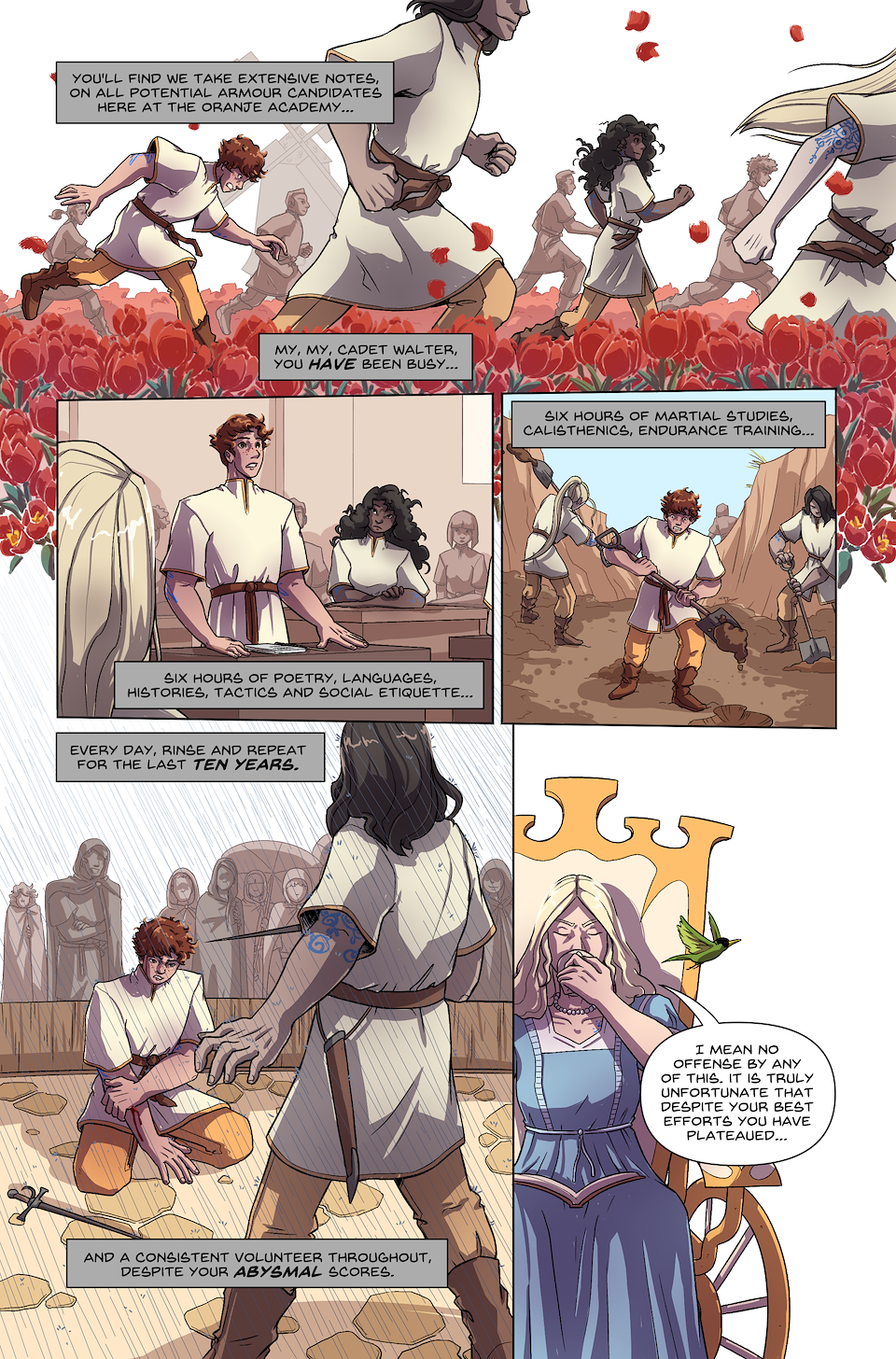 A young man does not, and will never excel. The headmaster wonders why. Written by Malcolm Derikx, drawn and coloured by me (2022)